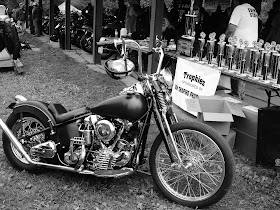 Jim Fricke looks over the XR750 Evel Knievel rode during his chicago shark jump in 1975